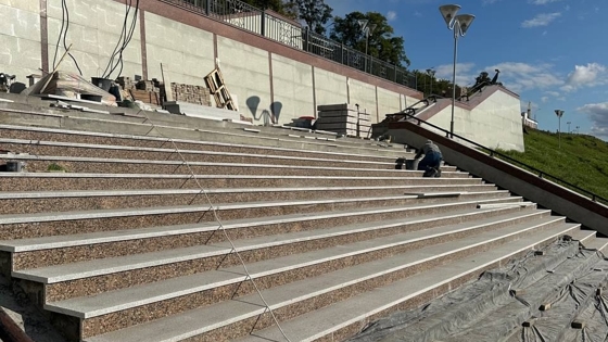 В Ижевске начали перекладывать ступени на спуске от монумента «Навеки с Россией» к набережной