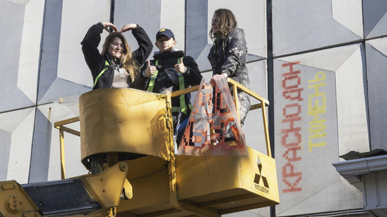 До этого художники нарисовали такой же мурал в Краснодоне в рамках проекта «Твоя история». Теперь краснодонцы приехали в Тюмень, чтобы продолжить работу.