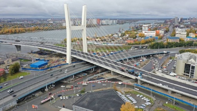 В общей сложности на левобережной развязке планируется открыть 25 съездов. Подготовка к открытию движения на мостовом переходе завершится в декабре. В настоящее время 70% парапетных блоков уже покрашены, устанавливаются мачты освещения.