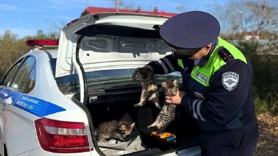 В Комсомольске-на-Амуре Хабаровского края сотрудники Госавтоинспекции спасли несколько котят, которых неизвестные бросили погибать на трассе.