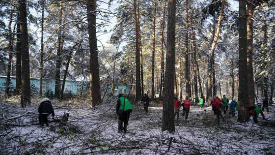 На прошлой неделе в Рудничном бору прошел большой субботник: студенты-волонтеры, ставшие "хранителями бора", помогли "Дирекции развития городских территорий" выкашивать территорию спортивной школы №3 от клена-убийцы. Поросль измельчали до опилок мульчером, полученной массой затем отсыпали лыжные трассы.