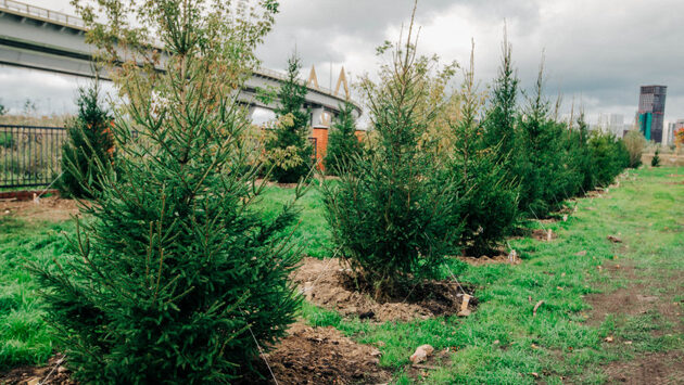На месте свалки под Миллениумом высадили почти 200 деревьев — липы, ели и клены