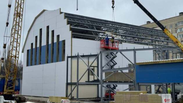 Все работы осуществляются в соответствии с установленным графиком. Уже завершены подготовка основания бассейна, монтаж металлических конструкций, прокладка внешних сетей водоснабжения и канализации, а также подключение к электросети.