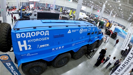 В числе новинок водородная версия вездехода "Русак" - на электрическом приводе от водородной энергетической установки. Это настоящая машина-лаборатория - она была создана совместно с МФТИ для исследования водородной технологии движения в условиях Арктики.