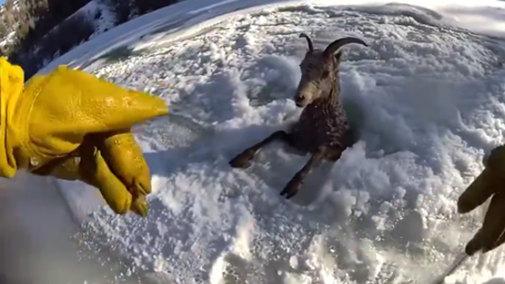 В США запечатлели на видео спасение горного барана из ледяной реки