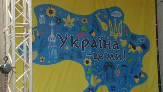 Задний фон сцены при этом украшает надпись «Украина — это мы». Украинский телеканал 112, возмутившись отсутствием «аннексированного» Крыма на карте, также сообщил, что «граница Украины на Донбассе проведена по линии разграничения в зоне конфликта. Кроме того, Киев на карте почему-то переместили в Полесье и нарисовали на месте Житомира».