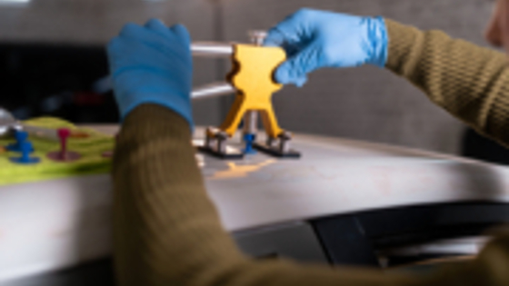 Специалисты журнала «РБК» рассказали как эффективно устранить неглубокие вмятины на кузове авто без покраски. Отметим, что эта очень кропотливая процедура выполняется в 3 этапа и может занять очень долгое время. Однако этот способ будет неэффективными на автомобиле с серьёзными повреждениями.Этап удаления вмятин начинается с крепления специальных клеевых пистонов, подходящих по форме и размеру. Далее повреждённый участок выравнивается обратным молотком или минилифтером. После завершения этапа пистоны удаляются при помощи специального раствора, не повреждающего лакокрасочного покрытия кузова.Внутреннее воздействие выполняется при помощи специального крюка: его вставляют через технологическое отверстие. Таким способом можно восстановить даже деформированное ребро жёсткости.На завершающем этапе исправляемый элемент доводят до идеального состояния. Остатки вмятин выправляются кернами с насадками из силикона или тефлона. Если на поверхности кузова есть царапины — их исправляют абразивными и безабразивными пастами.