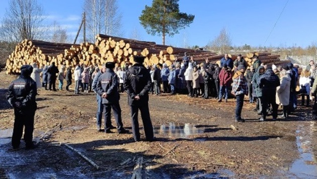 На площадке для складирования вырубленной древесины, послужившей местом сбора, также дежурила полиция, не вмешиваясь в происходящее, сообщает издание «Между строк»