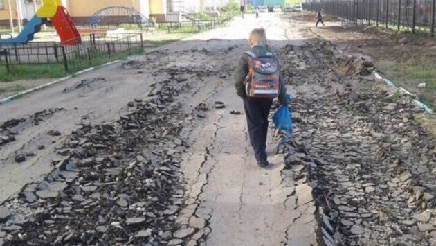 На подходе к володинской школе «Аврора» уничтожили асфальт тротуара