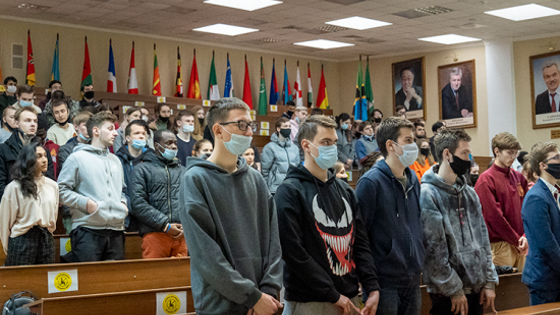 Студенты Валерия Кольцова, Роман Ткаченко, Полина Волкова, Анастасия Данилова, Дмитрий Батиков исполнили песни военных лет и прочли стихи о войне.