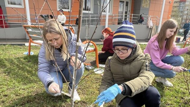 Родители и ученики провели субботник возле Красногоркой музыкальной школы