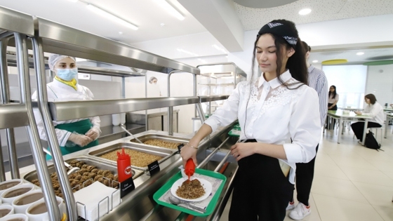 Сегодня в учебном заведении действует 12-дневное меню, блюда в котором не повторяются. На завтрак школьники могут добавить сладкие топинги к сырникам, блинчикам или каше. На обед – собрать свой салат из свежих или отварных овощей. Школьникам предлагают мясные блюда и гарниры, в их числе говядина по-мексикански, азу по-татарски.