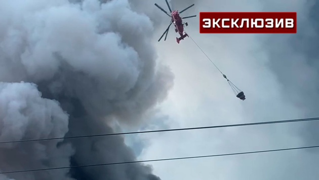 Вертолет Московского авиацентра прибыл к горящему складу OZON в Подмосковье