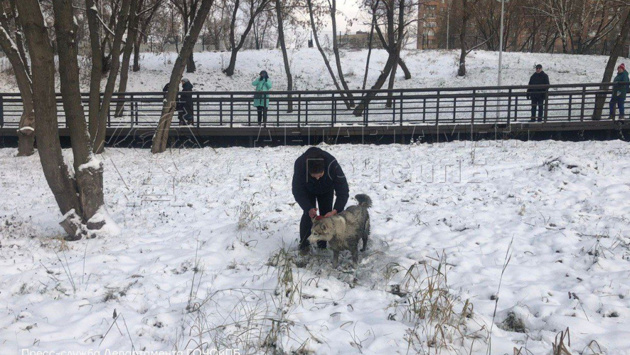 Днём 17 ноября на поисково-спасательную станцию «Марьино» обратилась женщина, отдыхавшая в природном заказнике Берег реки Москвы, с просьбой спасти собаку, которая выбежала на покрывшийся тонким льдом пруд и провалилась в полынью. К месту происшествия вышла дежурная смена в составе Николая Исаева и Игоря Козырева. Облачившийся в водонепроницаемый гидрокостюм, Николай направился к провалившемуся животному. Подхватив пса, он дал сигнал страховавшему его напарнику, и тот вытянул коллегу и спасённого на берег. На суше собака породы хаски по кличке Ют была передана хозяину. Мужчина поблагодарил спасателей за спасение своего любимца. Спасатели на воде предупреждают: будьте внимательны к своим питомцам и не спускайте их с поводка вблизи водоёмов.