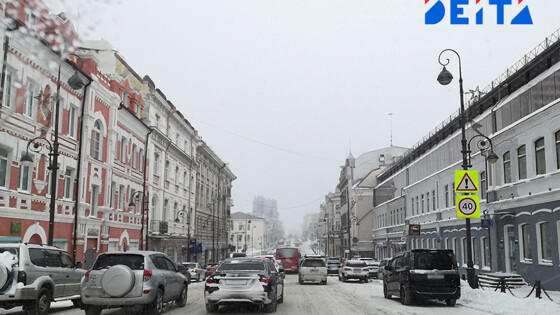 Глыба льда упала на женщину в центре Владивостока