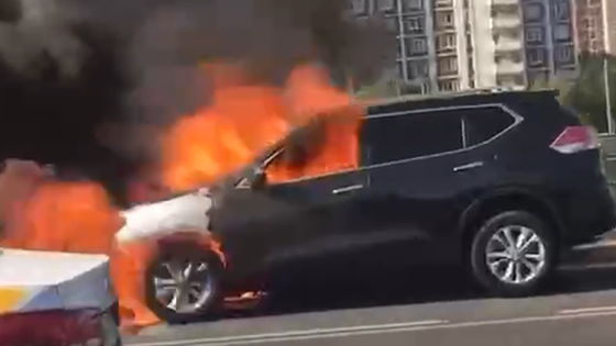 На внешней стороне МКАД сгорела машина на съезде в Бутово