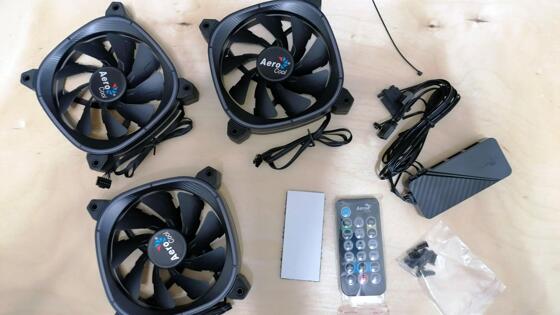 Хорошее охлаждение — это важно. Хотя, если речь заходит о современных устройствах организации воздушных потоков внутри вашего ПК, многие согласятся, что ещё и красиво. Про важность мы уже говорили и убеждались на примере даже не самого горячего процессора Intel Core i5-8500, меняя ему кулер, а затем оценивая возросшую отзывчивость системы. Но и остальные компоненты системного блока требуют эффективной циркуляции воздуха, чтобы достигать результатов производительности, которые указаны в спецификациях. Сегодня к нам на тестирование попала система охлаждения корпуса AeroCool Astro 12 Pro, на примере которой мы проверим, насколько качественно можно организовать этот момент. Комплектация Комплект вентиляторов с хабом Astro 12 Pro от бренда AeroCool приходит в картонной коробке, спереди на которой изображён весь комплект. Сзади предусмотрительно разместили схему подключения, а также указали спецификации продукта, отдельно указали, что для гибкого контроля подсветки потребуется материнская плата с поддержкой ARGB или хаб H66F. Бумажного руководства пользователя внутри не будет. На других гранях коробки можно увидеть название модели и бренда. Открывая крышку коробку видим 3 вентилятора, управляющий хаб, набор проводов для подключения, пульт дистанционного управления, застёжку-липучку на клеевой основе, чтобы удобнее было располагать и фиксировать всё это внутри корпуса вашего ПК, и 12 винтов для крепления и выносная кнопка сброса. AeroCool даёт 2 года гарантии на продукт. Внешний вид, качество сборки и материалов Вентиляторы выглядят достаточно агрессивно за счёт выемок на лопастях, которых у каждого 9 штук. Они получили достаточно массивную рамку крепления, где производитель скрыл светодиоды подсветки. Углы рамки прорезинены, чтобы гасить вибрацию от работы и бороться с побочным шумом. Стоит отдельно рассказать об ощущениях от материалов, из которых изготовлен комплект. Такое впечатление, что для вентиляторов использовали более дорогой и качественный пластик, чем для хаба, что можно объяснить попытками снизить конечную цены на весь комплект, не жертвуя качеством в целом. Ведь для вентиляторов важно, чтобы они справлялись с задачей охлаждения вашего ПК эффективно и максимально тиха. Хаб же вы единожды приклеите где-то внутри корпуса, а дальше вряд ли будете о нём вспоминать. При этом Aerocool попытались украсить даже хаб, сделав на корпусе текстуру под карбон. Пульт стандартный, аналогичный, но с другим набором кнопок используется, например, для контроля саундбара Creative SoundBlasterX Katana. Работает от батарейки CR 2025, идущей в комплекте. Управляет системой на частоте 433 МГц и воспринимается с расстояния до 10 метров. Как в работе В первую очередь, выбирая, Astro 12 Pro мы смотрим на диаметр лопастей, который здесь равен 120 мм, затем нас радует цифра количества децибел уровня шума — 17,5 (причём в спецификациях он указан не вариативно), максимальная скорость вращения в оборотах в минуту — 1000. Кроме того, так как вентиляторы предназначены для охлаждения внутреннего пространства корпуса, а не процессора или иного конкретного компонента системы, нам важен показатель воздушного потока, который здесь весьма приличный — 42,1 CFM. Создаваемое давление в этом случае вторично. Вентиляторы используют уже стандартное сегодня решение для такого типа продуктов — гидродинамический подшипник.