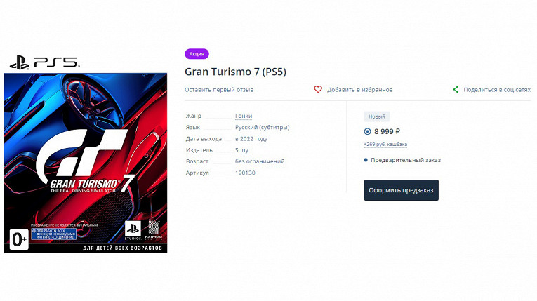 Новая часть легендарного гоночного симулятора Polyphony Digital была одним из первых ААА-проектов, заблокированных на территории России. В ночь релиза издатель принудительно отменил предзаказы российских пользователей и компенсировал им потраченные средства. Официально выход игры в РФ отложен на неопределенный срок.