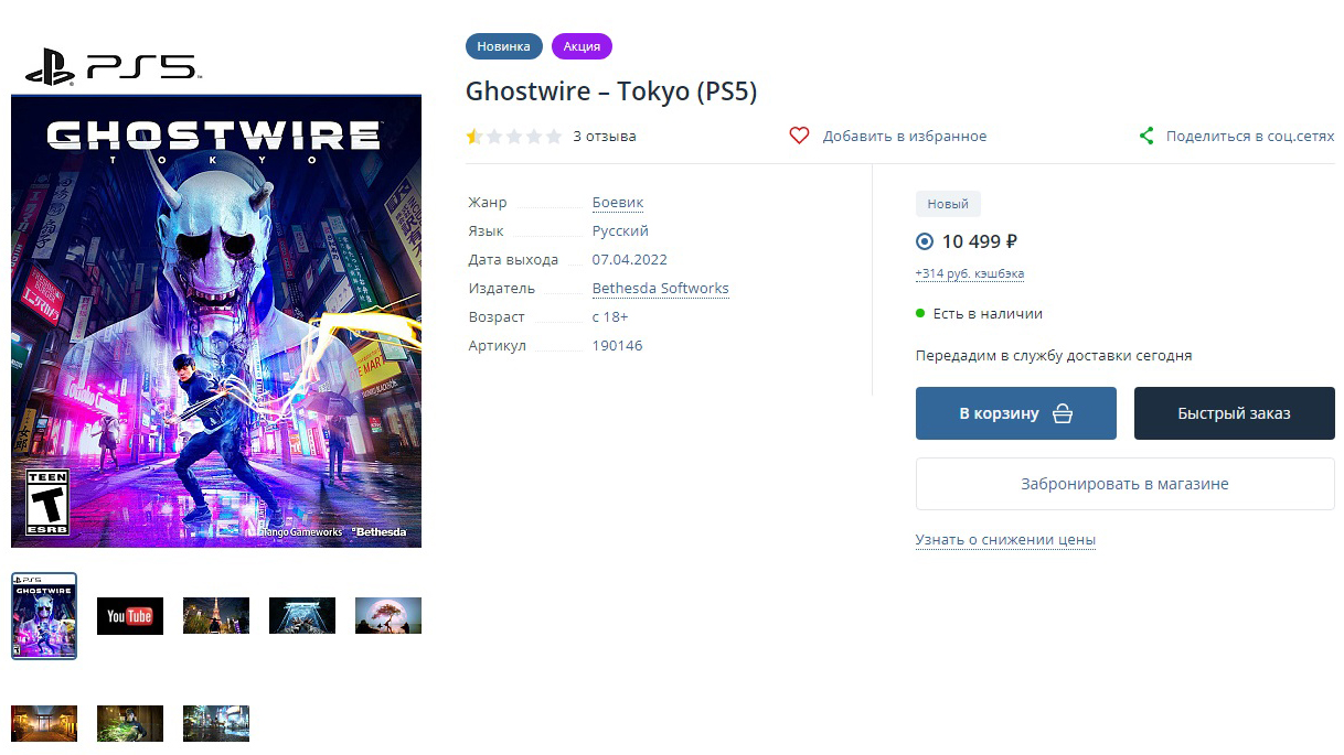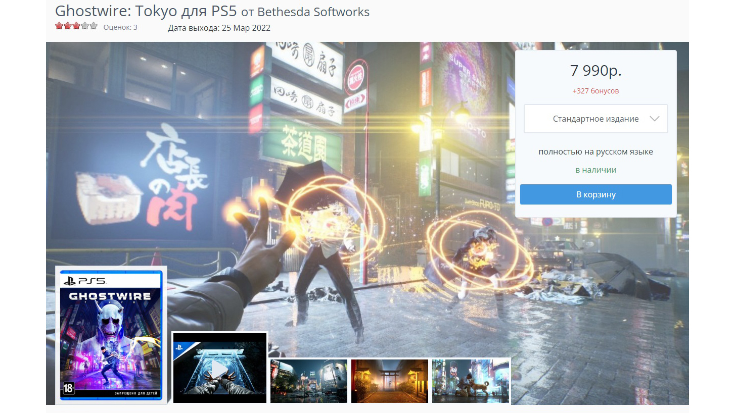 Приключение в захваченном призраками Токио от Tango Gameworks было одним из самых ожидаемых проектов последних лет. Возможно, именно на этом фоне те немногие продавцы, что все же смогли раздобыть диски с игрой, ощутимо взвинтили цены. Также вероятно, что на ценообразовании сказалась логистика: если LEGO Star Wars и Gran Turismo 7 привезены из ОАЭ, то Ghostwire: Tokyo пришла из Европы.