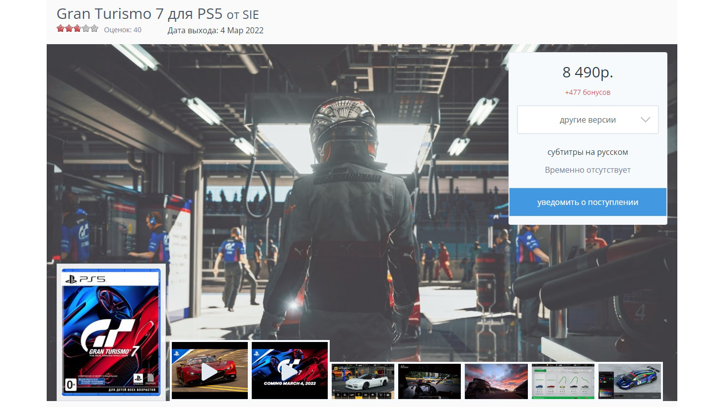 На GamePark за диск просят 8 999 рублей, но пока игры нет в наличии. Только предварительный заказ.