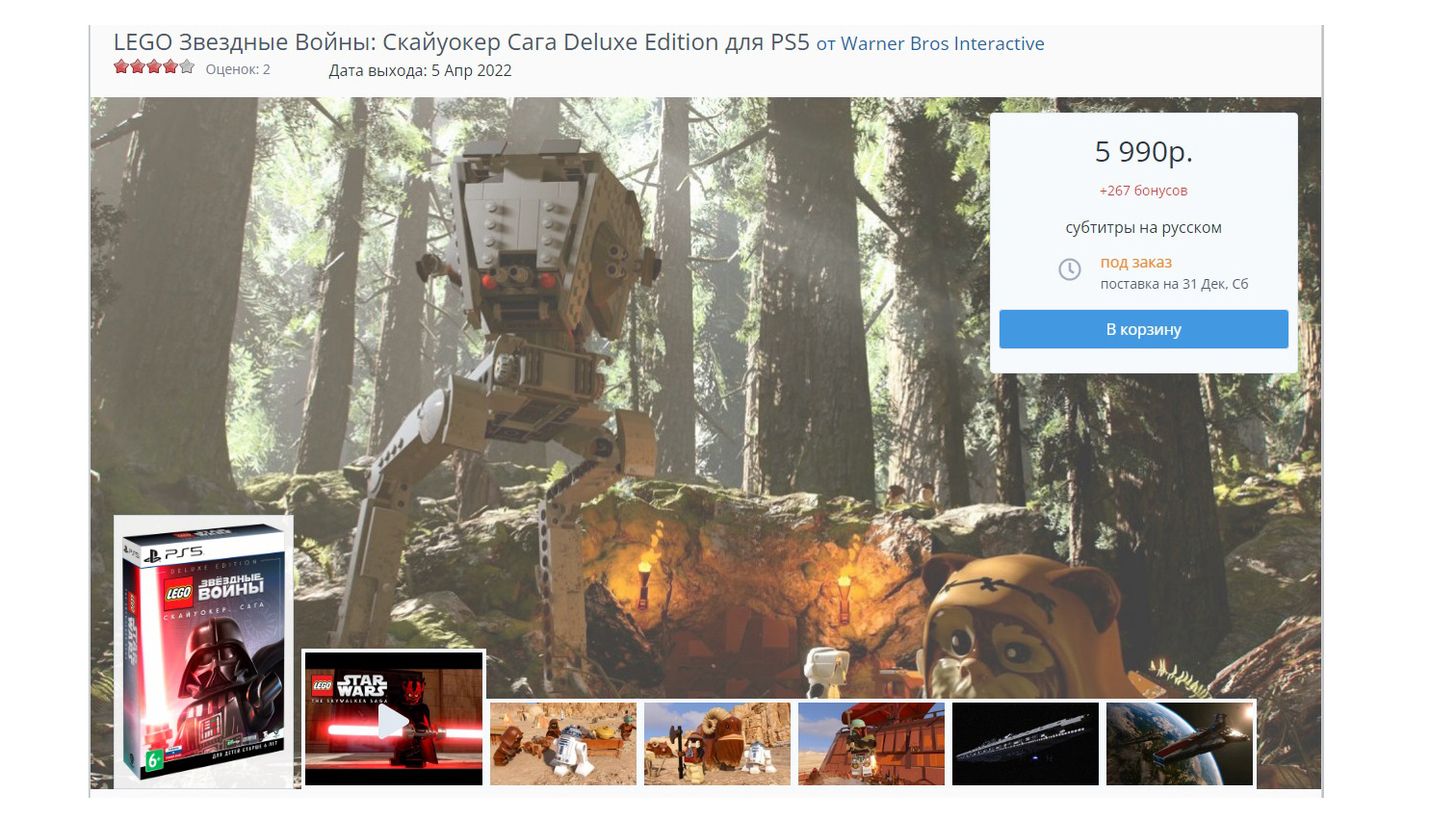 Наконец, на Gamebuy можно под заказ приобрести только делюкс-издание игры по цене в 5 990 рублей. Поставка также намечена на 31 декабря 2022 — то есть, никто не знает, когда она появится в наличии.