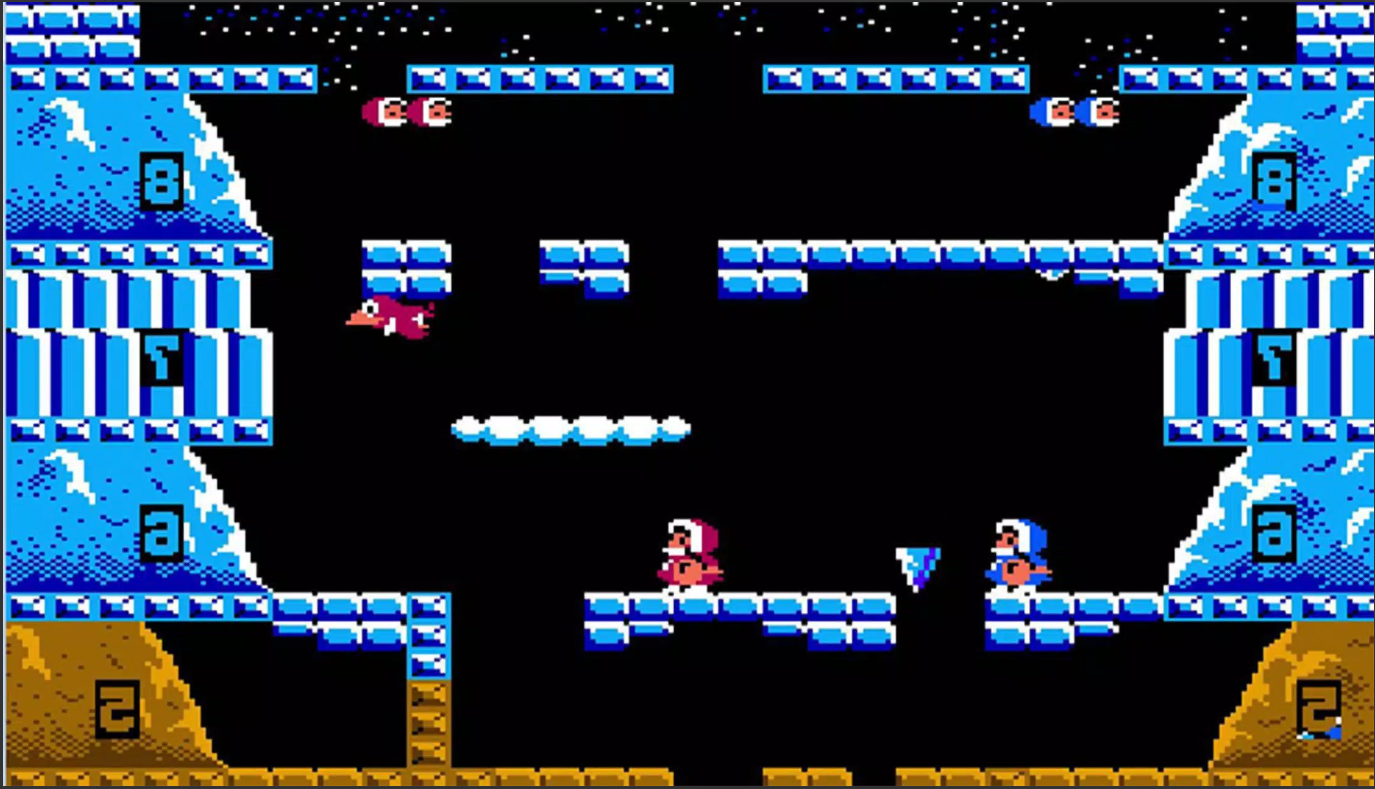 Классический платформер, где двум храбрым скалолазам предстоит вскарабкаться на вершину горы, чтобы отобрать собственный обед у наглой птицы. Оба игрока в Ice Climbers вооружены молотком и способностью высоко прыгать: для того, чтобы забраться наверх, необходимо разбивать льды, побеждать монстров и избегать ловушек.