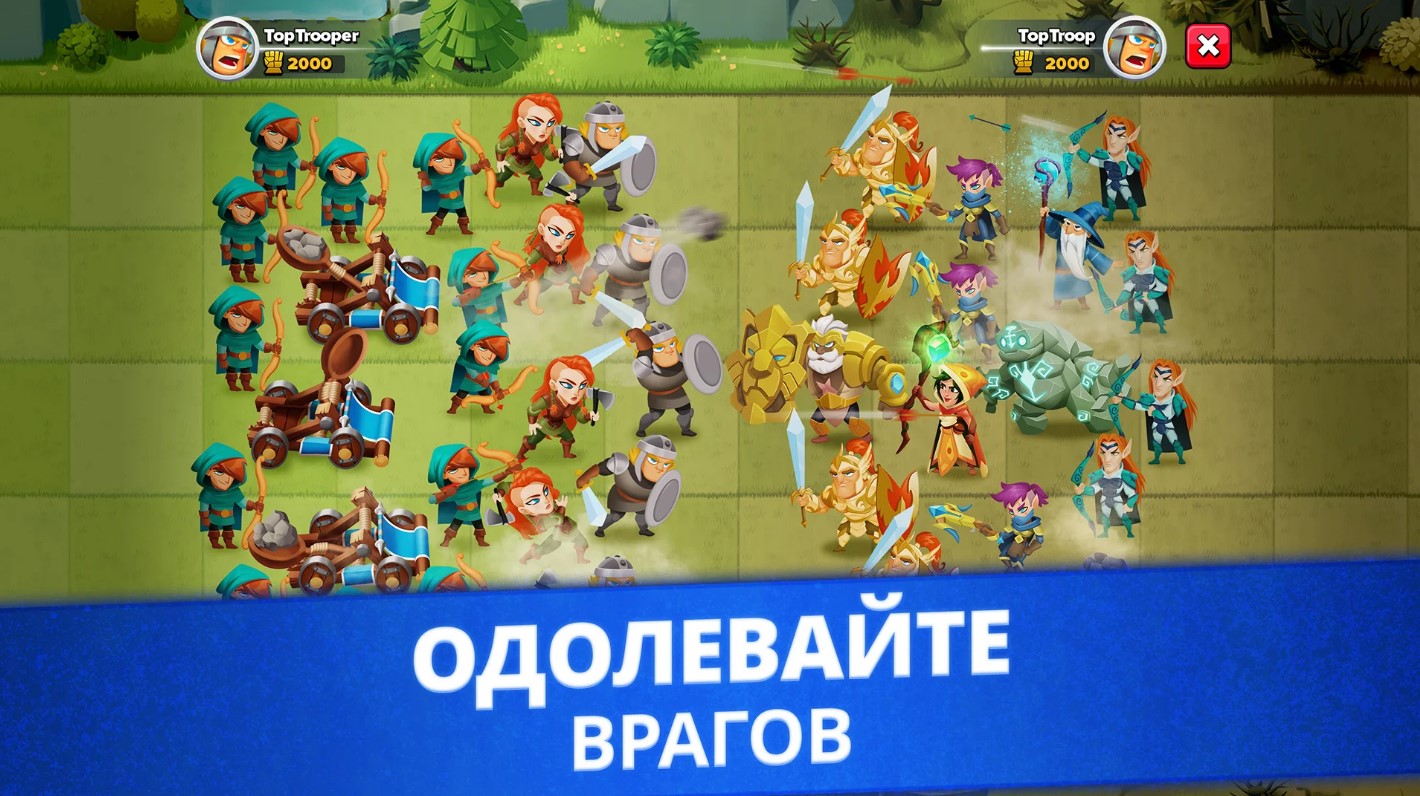 Яркая стратегия, которая будет хорошо знакома поклонникам Clash of Clans и других схожих проектов. Top Troops делает ставку на разнообразие контента: среди режимов игры есть как сюжетная кампания, так и многопользовательские сражения, режим испытаний и многое другое.