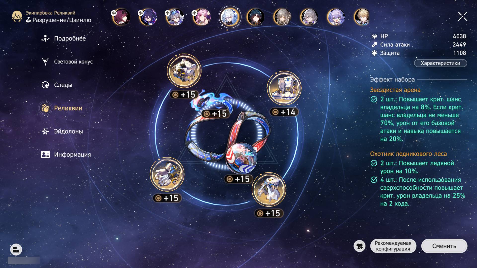 - Тело: критический шанс и критический урон. Цзинлю строго нужно 50% критического шанса, чтобы постоянно наносить критические атаки в состоянии трансмиграции. Чем выше крит. урон, тем лучше.