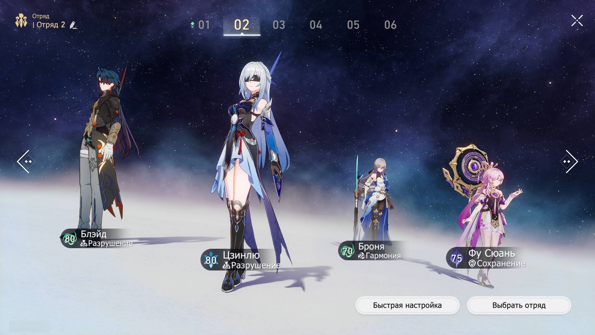 - Броня. Лучший персонаж поддержки для Цзинлю благодаря своим мощным баффам. Если вы соберете обеих героинь таким образом, что скорость Брони будет всего на единичку выше Цзинлю, то она сможет каждый ход отдавать свое действие. Не говоря уже о том, что сверхспособность Брони повышает критический урон — самый важный параметр для Цзинлю.