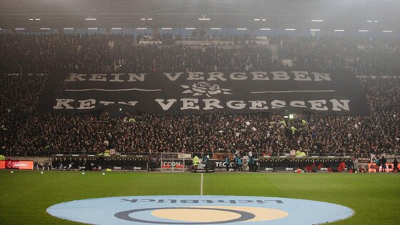 «Не простим, не забудем». Фанаты «Санкт-Паули» вывесили баннер в память о Хрустальной ночи и убитом в Освенциме футболисте клуба