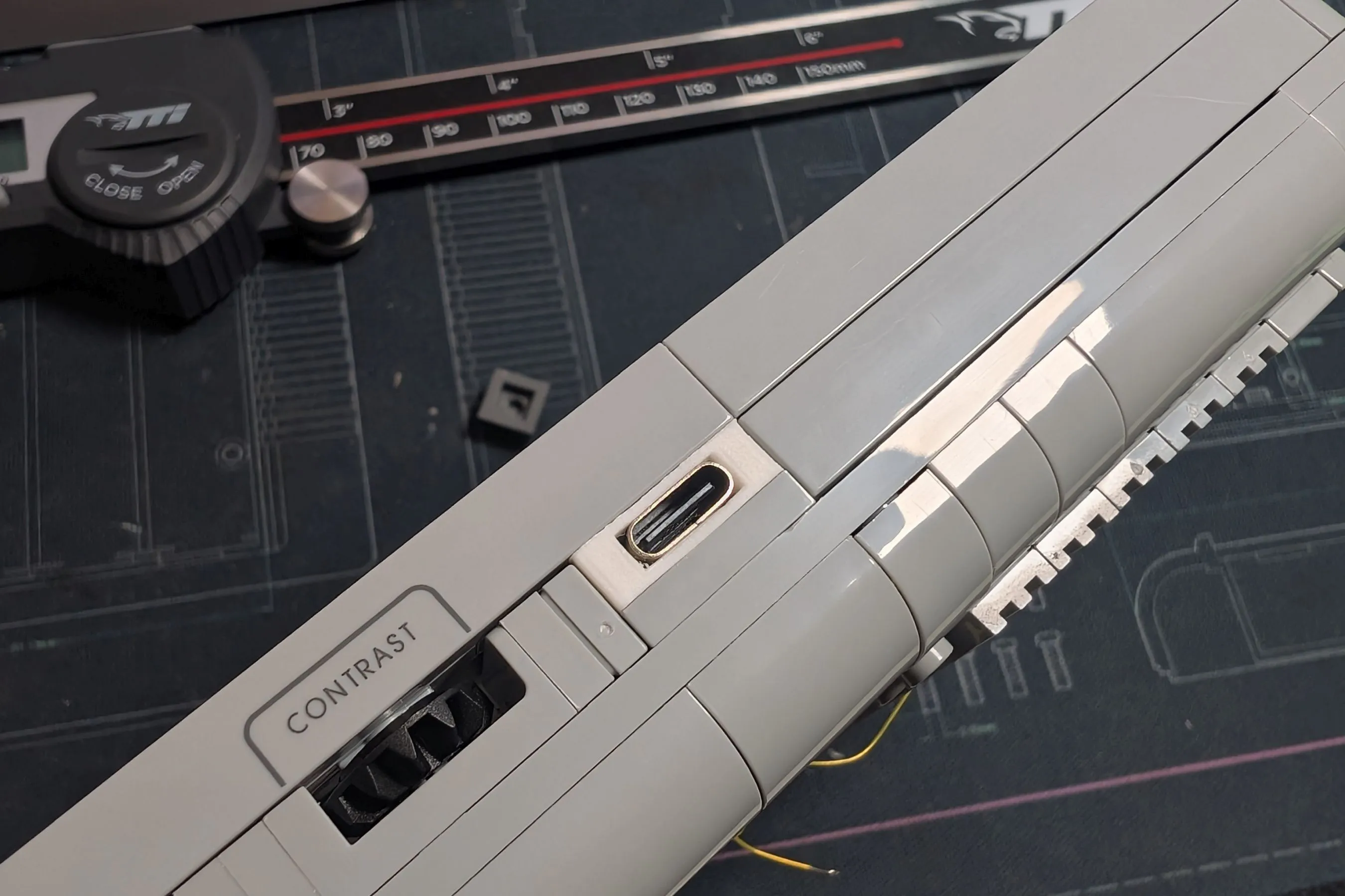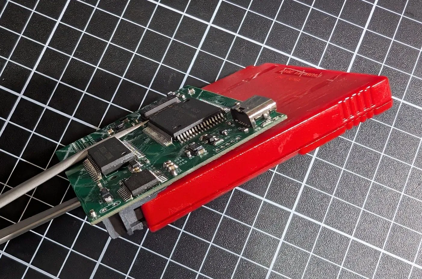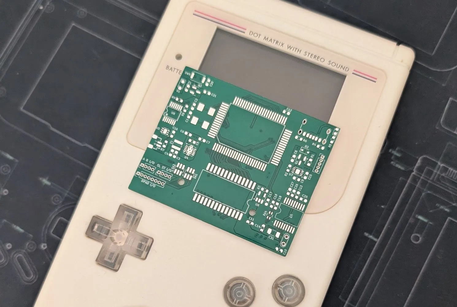 Чтобы поместить всю электронику в Lego-консоль, Натали создала плату размером меньше обычного картриджа. Маленький экран пришлось встроить, удалив несколько кирпичиков Lego. Кнопки пока не установлены непосредственно на плату. Для питания используется USB-C.