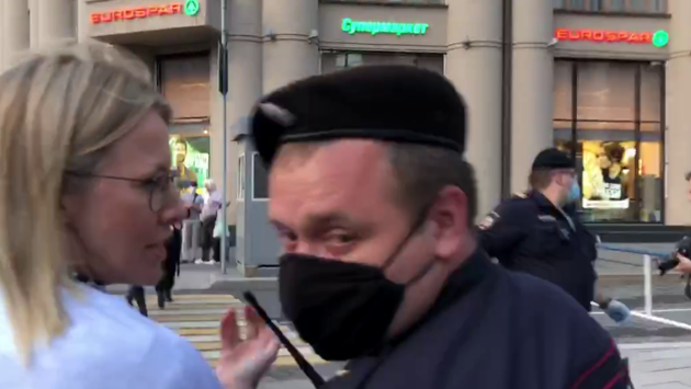 На опубликованном видео с места событий запечатлено, как Собчак уходит в сопровождении нескольких полицейских. Судя по словам журналистки, ее задержали за публичные высказывания.