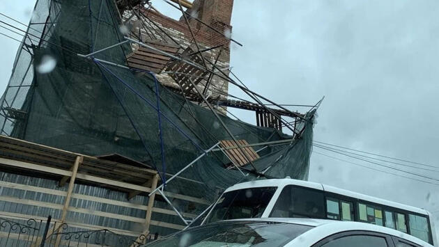 В Смоленске строительные леса рухнули на маршрутку