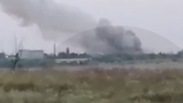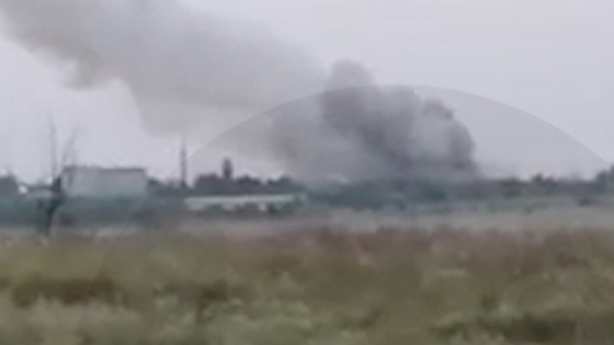 На кадрах видно, как огромные столбы дыма поднимаются в небо над комбинатом.