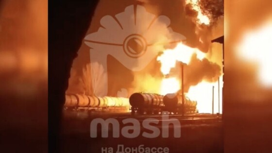 Как сообщает Telegram-канал Mash, снаряд попал по составу с топливом на железнодорожной станции «Мушкетово». Предварительно, пострадавших нет.
