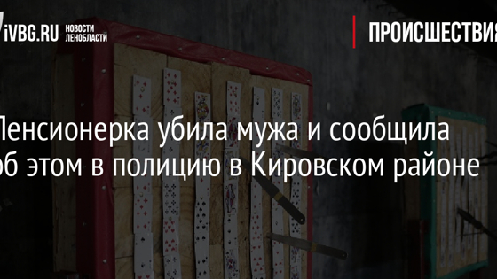 В полицию Кировского района 19 сентября около 23:00 обратилась 73-летняя жительница Кировска. Женщина призналась в убийстве 67-летнего мужа. По ее словам, это случилось около 14:00 во время распития алкоголя. У супругов произошел конфликт, женщина ударила мужа в голову ножом. Мужчина скончался. Подозреваемая полностью признала вину и раскаялась. Обстоятельства происшествия устанавливаются. По предварительным данным, ударов было два, в голову и в шею.