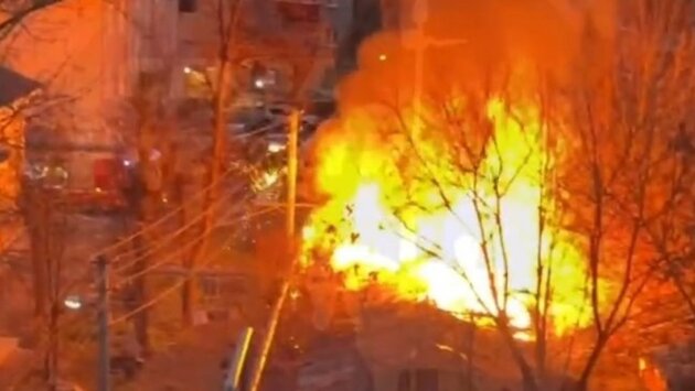 Видео с места событий появилось в Сети. На кадрах видно, что строения горят открытым пламенем.