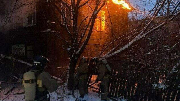 Хозяйку квартиры горевшего дома в Слободском спасли через окно по выдвижной лестнице