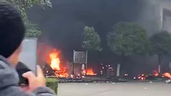 По данным канала, инцидент произошел по время испытаний беспилотника. В какой-то момент дрон не справился с управлением и врезался в здание, после чего загорелся. На кадрах с места событий можно увидеть огонь и столб черного дыма.