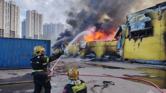 Площадь пожара в промзоне в подмосковных Котельниках резко увеличилась