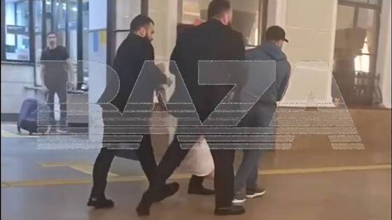 На предоставленном видео несколько мужчин в костюмах несут пострадавшего, взяв его за руки и ноги, в машину. В это время он зовет на помощь, говоря, что это не полицейские, и говорит, что уже вызвал настоящих стражей порядка.