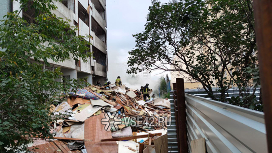 На место приехали как минимум три пожарные машины. Спасатели приступили к тушению и разбору завалов.
