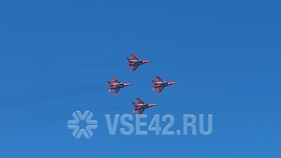 Сегодня днем, 29 августа, авиационная группа высшего пилотажа "Стрижи" прибыла в Новокузнецк и показала воздушное шоу. На улицах города собралось множество людей, которые увидели его.