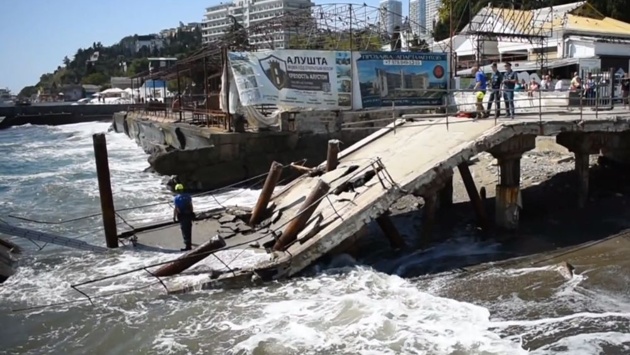 На центральной набережной Алушты обрушился морской причал