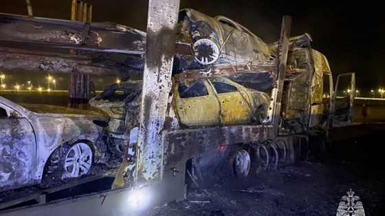 Автовоз с иномарками сгорел в Нижегородской области