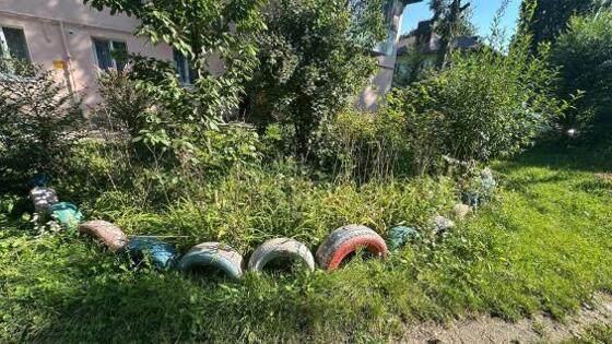 В Курске прокуратура потребовала убрать 156 автошин, уложенных на газонах у двух домов