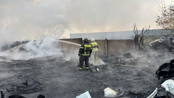 Сильный пожар ликвидирован на складе автозапчастей в Северской