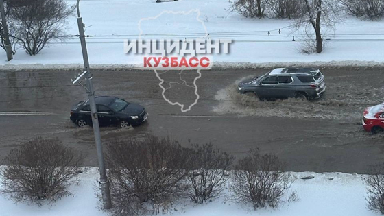 В Сети появилось сообщение о прорыве трубопровода в Кемерове. Из-за этого Октябрьский проспект оказался залит водой.