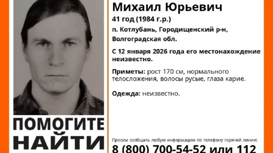 В Волгоградской области продолжаются поиски пропавшего Михаила Попова из поселка Котлубань Городищенского района. Местоположение 41-летнего мужчины остается неизвестным с 12 января 2026 года.