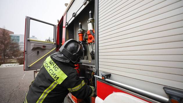 В многоэтажном доме в деревне Сапроново Московской области произошел пожар, а чтобы потушить его, сотрудникам МЧС пришлось пешком добираться до места, сообщает Telegram-канал «112».